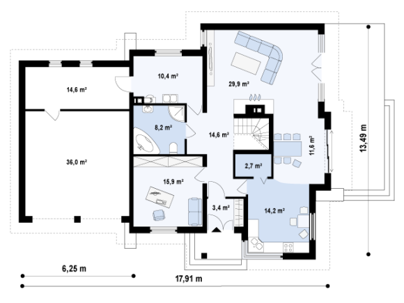 Готовый проект каменного дома Z31 отличается своей монументальностью, а отделка фасадов из камня подчеркивает надежность его конструкции. Такой дом будет хорошо смотреться на больщом открытом участке, либо в лесном массиве.