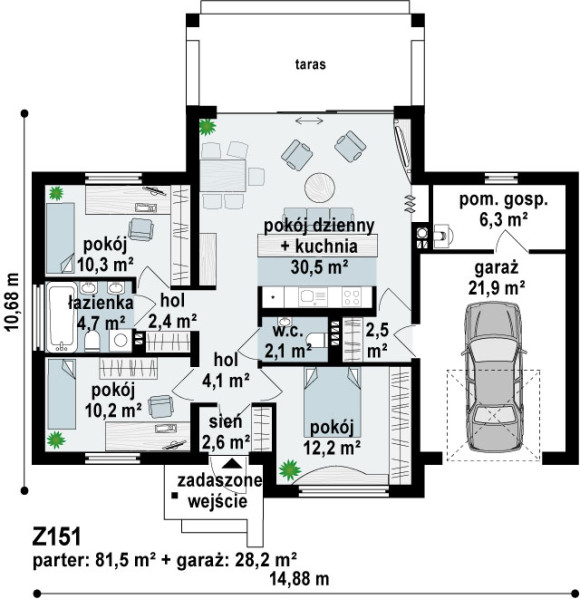 Be the first to review “Готовый проект одноэтажного дома Z151”