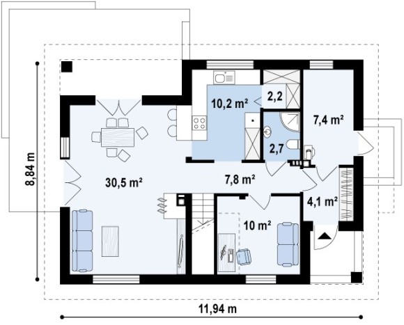 Готовый проект загородного коттеджа Z228