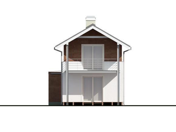 Задний фасад дома Z25 украшает балкон с крытой террасой, которую можно использовать для барбекю в летний период. На первом этаже можно спроектировать дополнительные окна на кухне и в гостиной. Несмотря на скромные габариты здания, функциональность интерьера ничуть не пострадала. Вы можете реализовать свой собственный интерьер, так как несущие стены здесь отсутствуют.