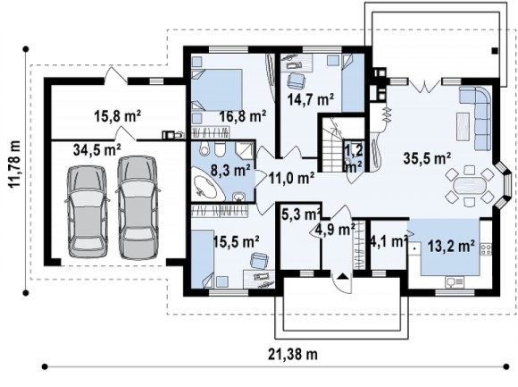 Проект дома из блоков с гаражом на две машины Z10 GL2 stu