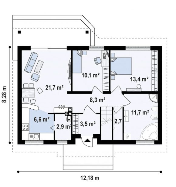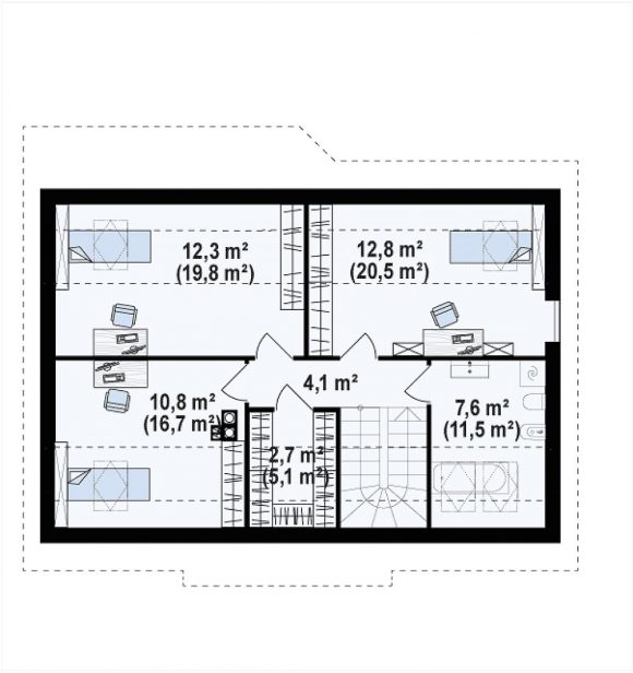 Проект дома с мансардой без гаража Z7 P 35