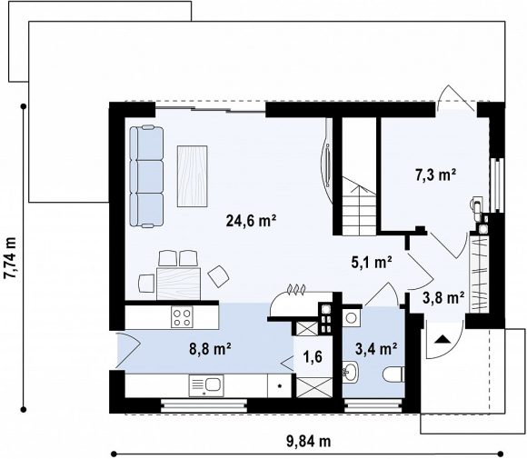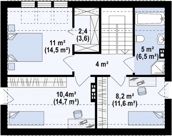 Проект дома с мансардой и двускатной крышей Z229