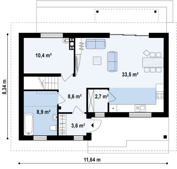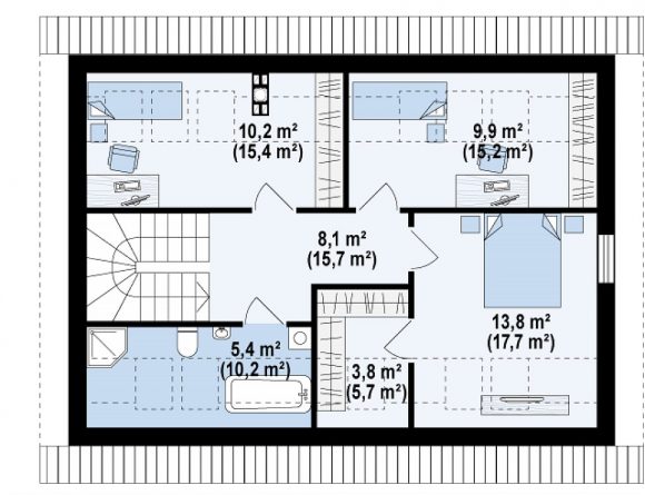 Проект дома с мансардой и двускатной крышей Z267