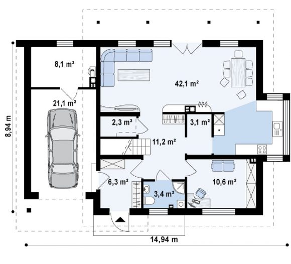 Проект дома с мансардой и гаражом Z231