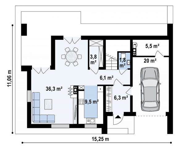 Проект дома с мансардой и гаражом Z347