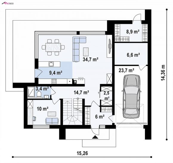 Проект дома с мансардой и гаражом Z456