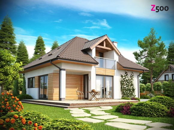 Проект дома с мансардой и многоскатной крышей Z145