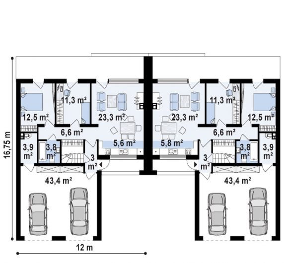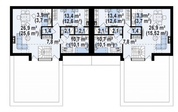 Проект дома с мансардой на две семьи Zb17