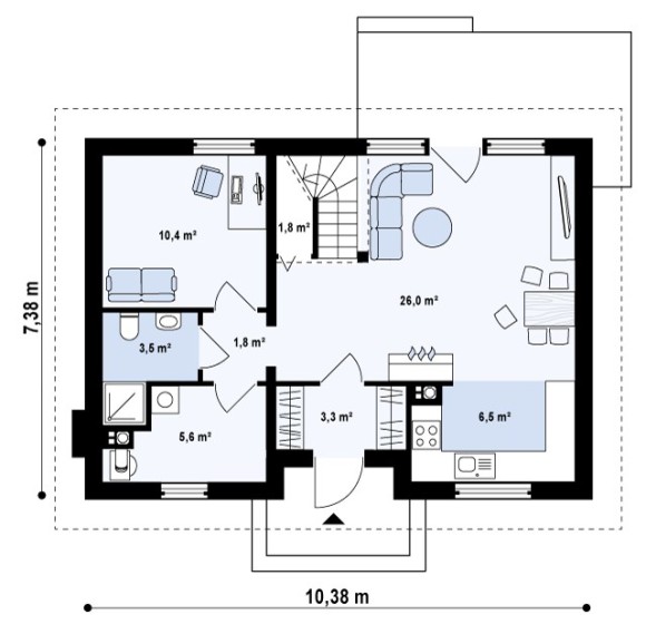 | Минимальные размеры участка | ширина 18,38м × длина 15,38м |