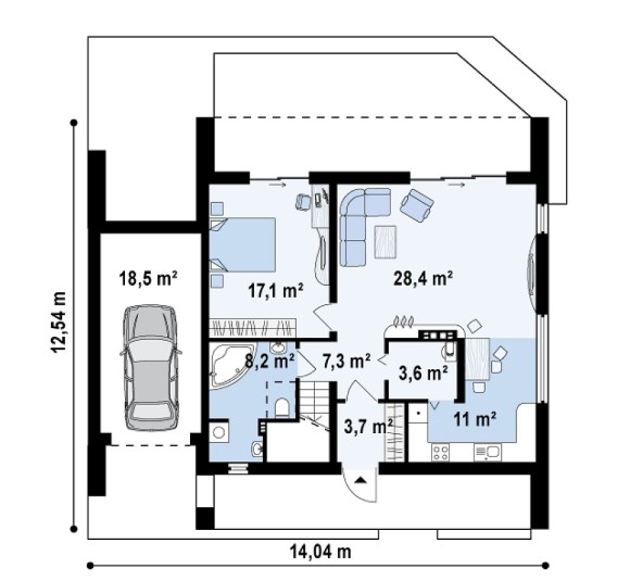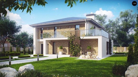 Проект двухэтажного дома с балконом и гаражом Zx55