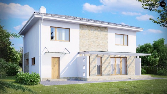 Проект двухэтажного дома с гаражом и балконом Zx4