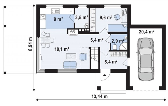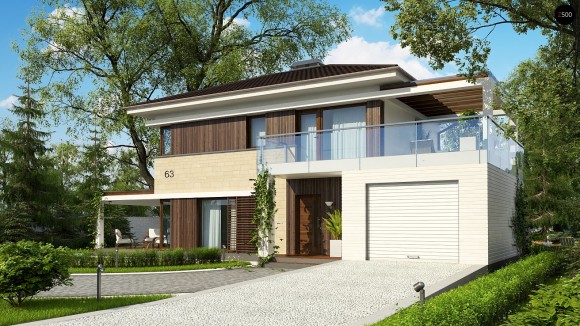 Проект двухэтажного дома с гаражом на одну машину Zx63 B
