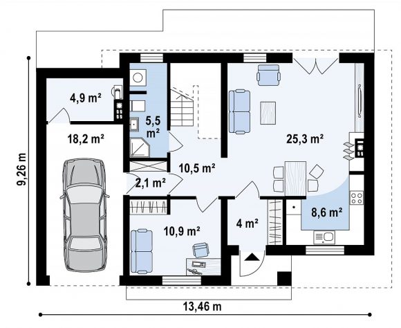 Проект двухэтажного дома с гаражом Z29 minus
