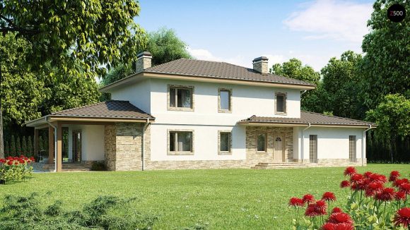 Проект двухэтажного дома с гаражом Z74