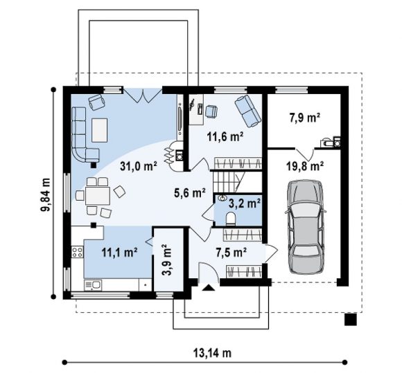 Проект двухэтажного дома с гаражом Zx29 k