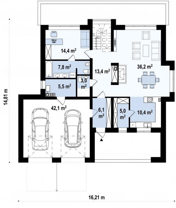 Проект двухэтажного дома с гаражом Zx62 A