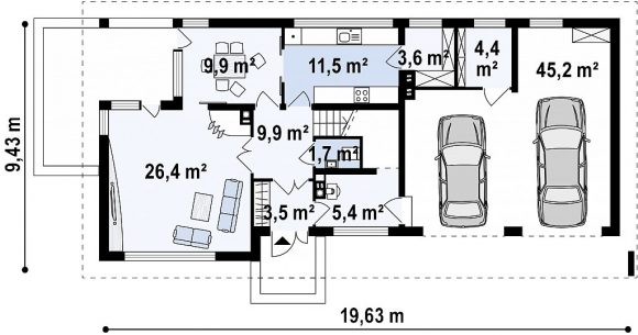 Проект двухэтажного дома с гаражом Zx8 GP2
