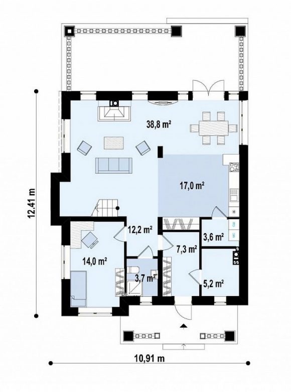 Проект двухэтажного дома с панорамными окнами Zz2 L BG