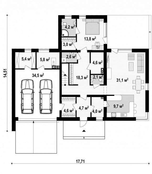 Проект двухэтажного дома с плоской крышей Zx46 GL2