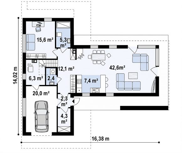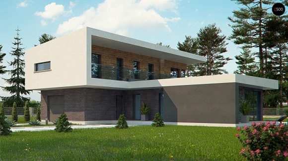 Проект двухэтажного дома с плоской крышей Zx70