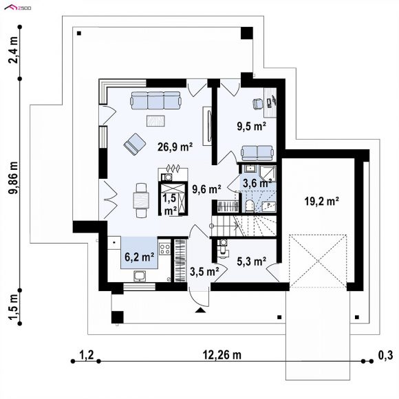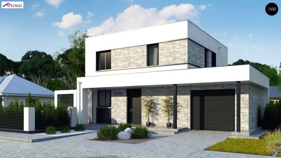Проект двухэтажного дома с плоской крышей Zx92 GP