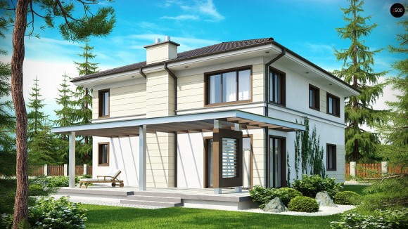 Проект двухэтажного дома с просторной летней террасой Zx33