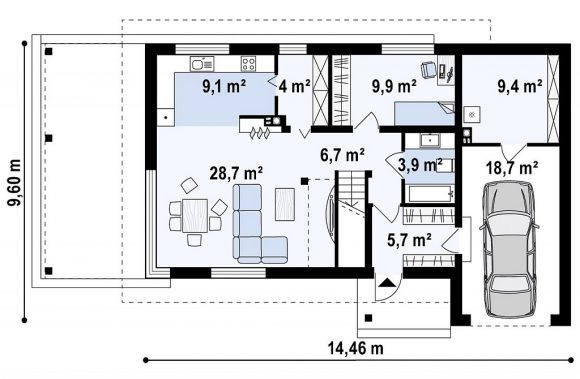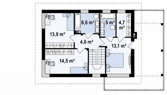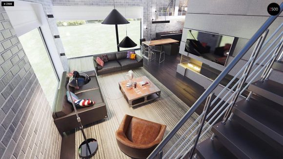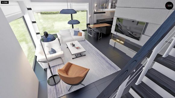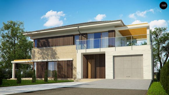 Проект двухэтажного дома с террасой на втором этаже Zx63 B + s