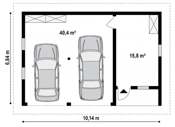Проект гаража из блоков с хозпомещением Zg1