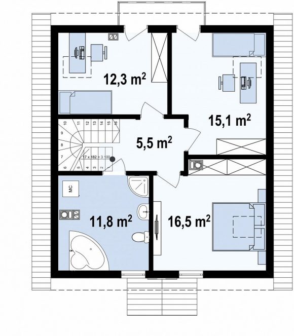 Проект каркасного дома с мансардой и эркером Z99 dk