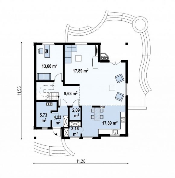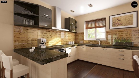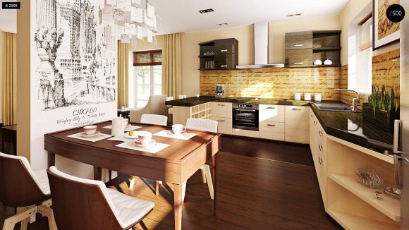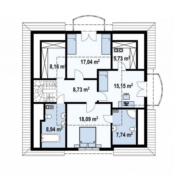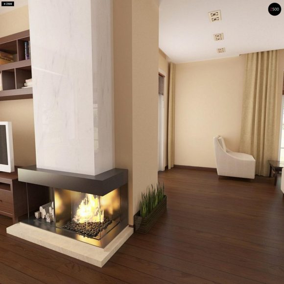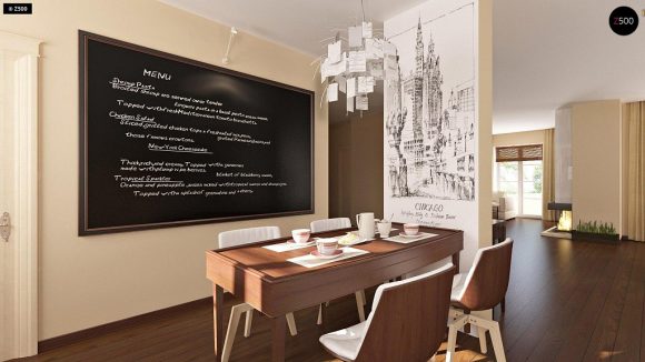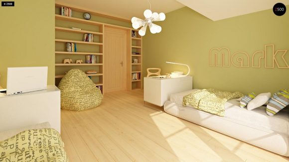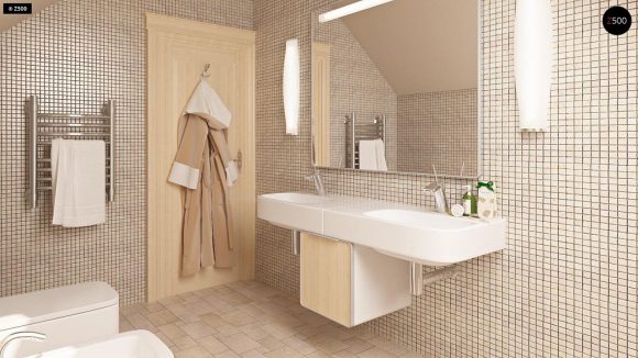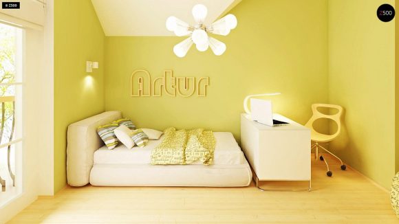 Проект каркасного дома с мансардой и панорамными окнами Z18 dk