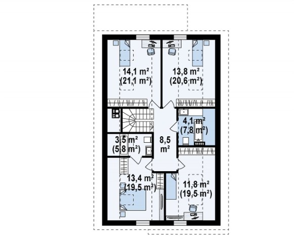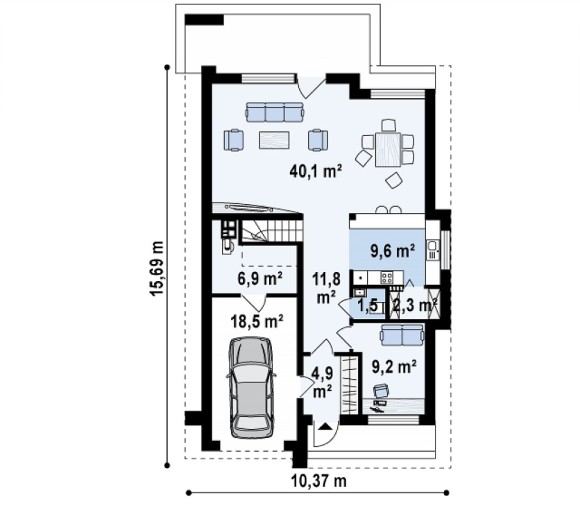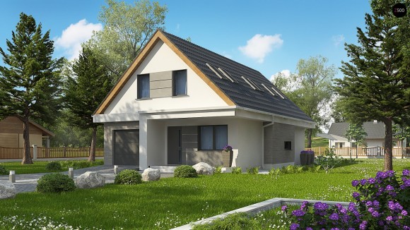 Проект мансардного дома из кирпича с гаражом Z324