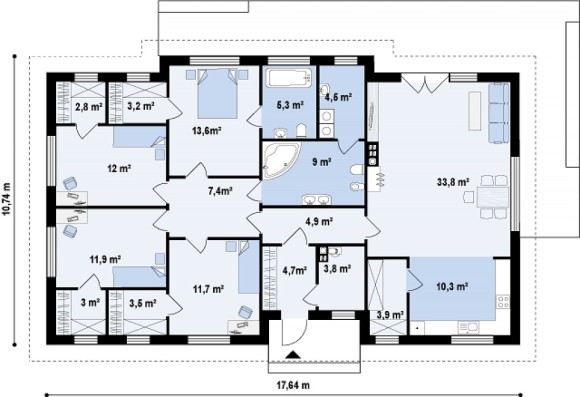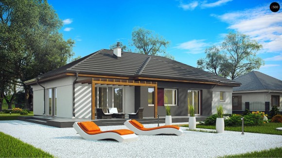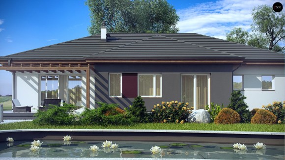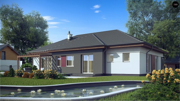Проект одноэтажного дома с четырехскатной крышей Z310