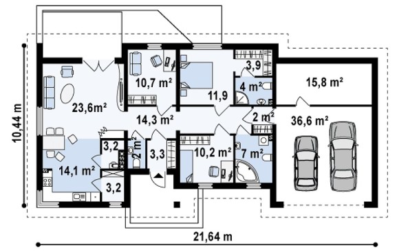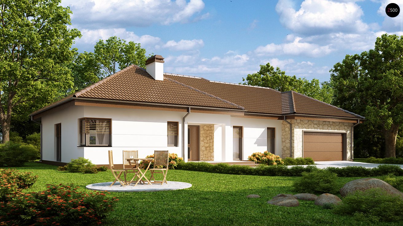 Проект одноэтажного дома с гаражом на две машины Z167