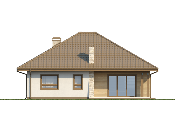 Проект дома был разработан с учетом последних энергосберегающих технологий. Внутреннее пространство продумано с умом: большая гостиная с камином и выходом на террасу объединена с целью экономии места с обеденной зоной. Кухня с отдельной кладовой зрительно отделена практичной барной стойкой. В доме две спальни и 2 санузла для максимального удобства жильцов.