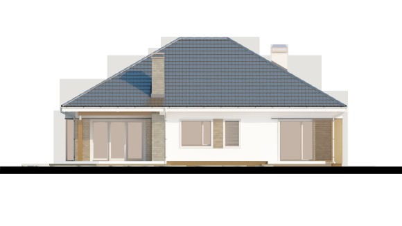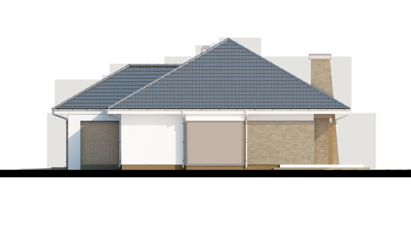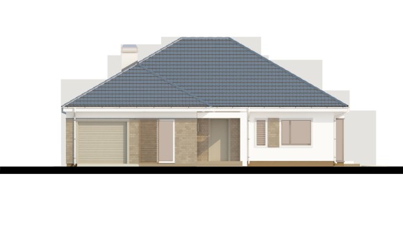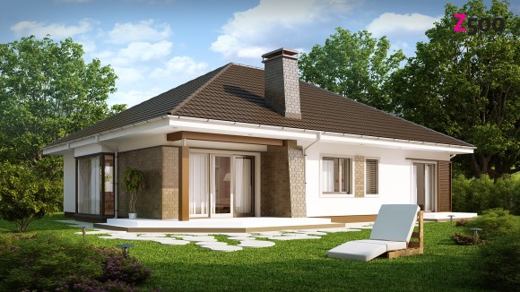 Проект одноэтажного дома с гаражом Z205 очаровывает уже внешне: облицовка кирпичом придает дому фундаментальный вид, а большие окна подчеркивают его современный стиль.