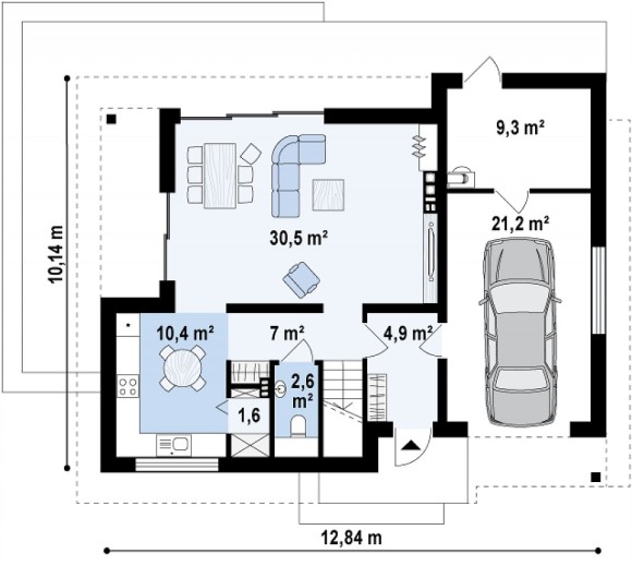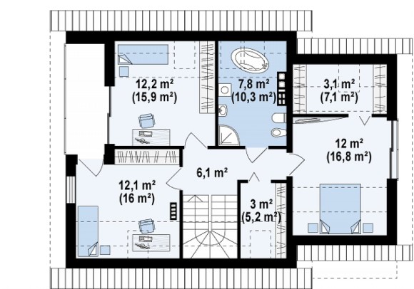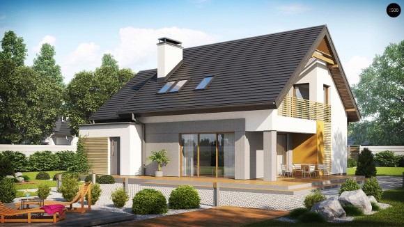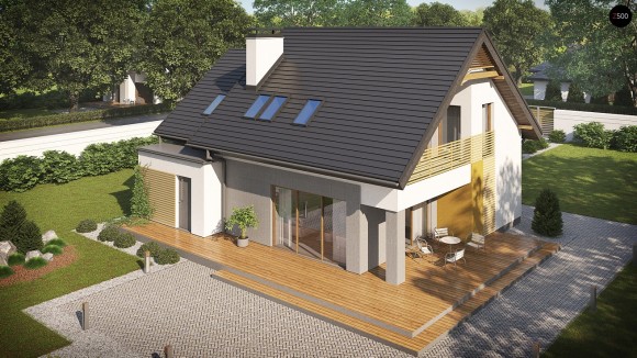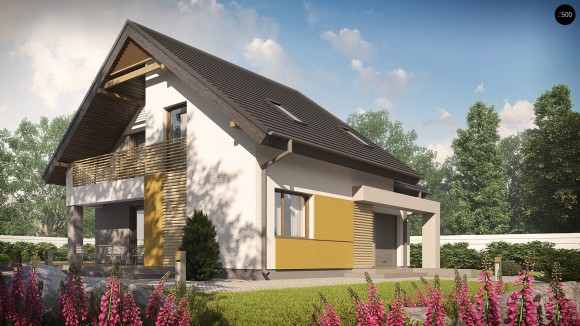 Проект одноэтажного дома с мансардой и тремя спальнями Z219