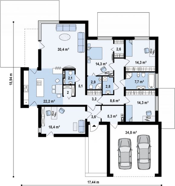 Проект одноэтажного дома с плоской крышей Zx101 GP2