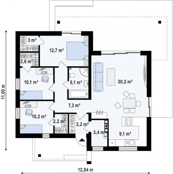Проект одноэтажного дома с плоской крышей Zx105 B