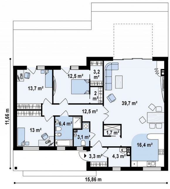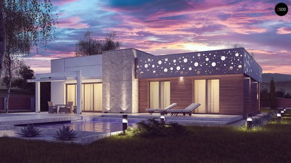 Проект одноэтажного дома с плоской крышей Zx115