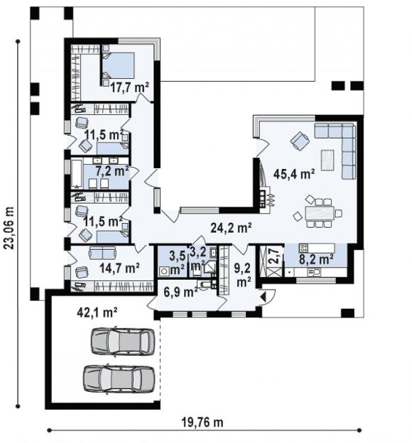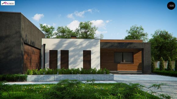 Проект одноэтажного дома с плоской крышей Zx128