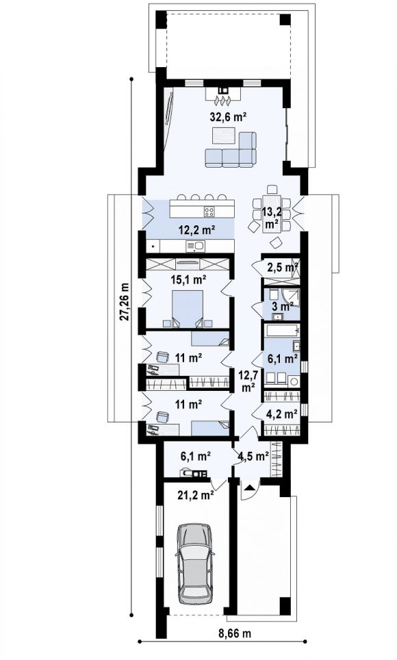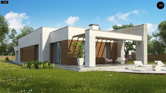 Проект одноэтажного дома с плоской крышей Zx129