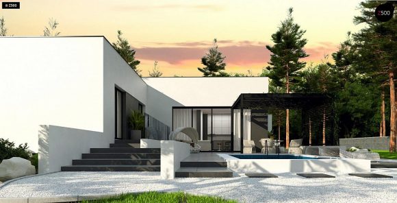 Проект одноэтажного дома с плоской крышей Zx141 S