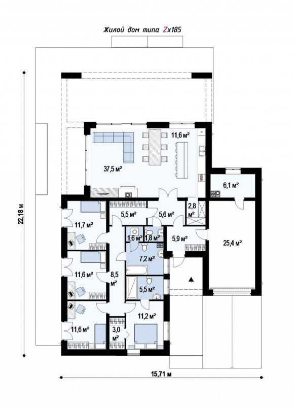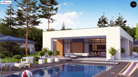 Проект одноэтажного дома с плоской крышей Zx185