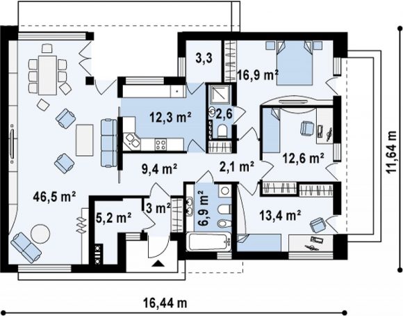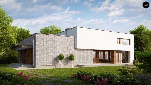 Проект одноэтажного дома с плоской крышей Zx34