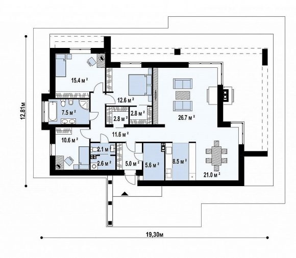 Проект одноэтажного дома с плоской крышей Zx65 +