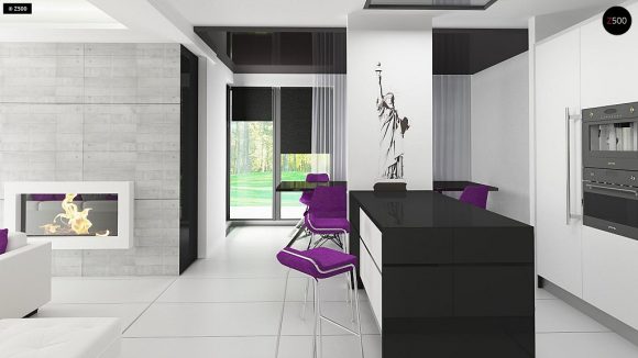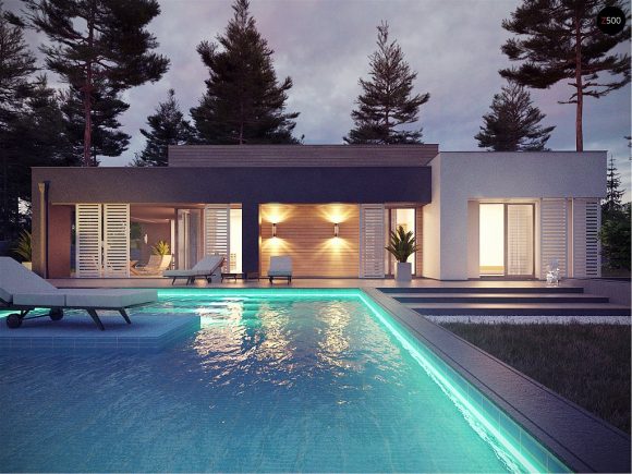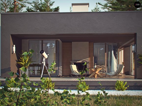 Проект одноэтажного дома с плоской крышей Zx65