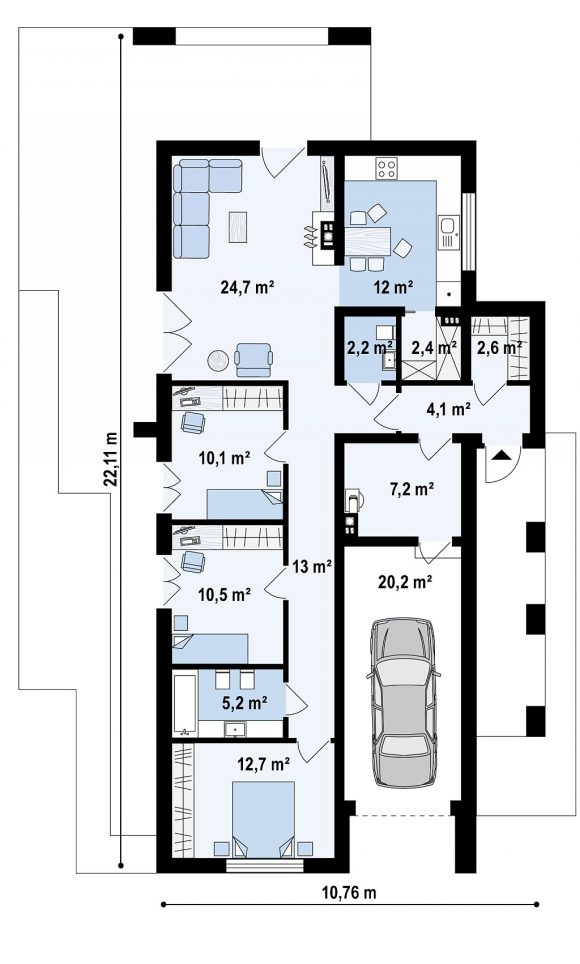 Проект одноэтажного дома с плоской крышей Zx68 A minus