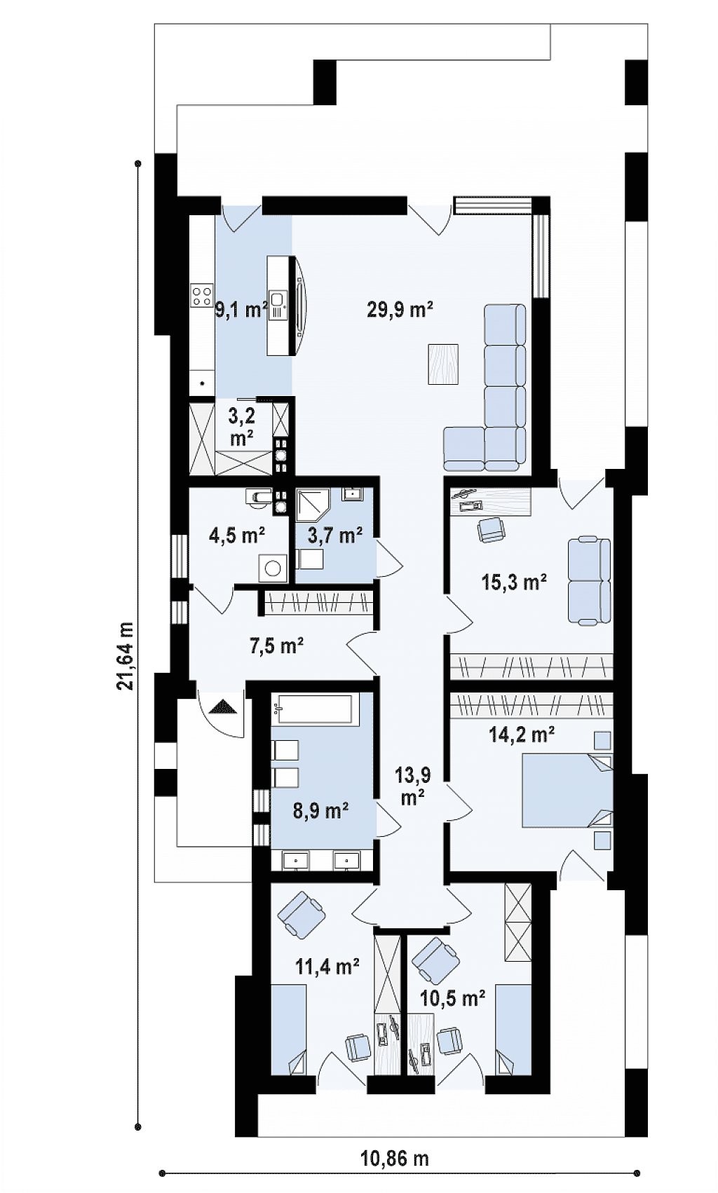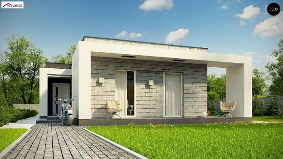 Проект одноэтажного дома с плоской крышей Zx69