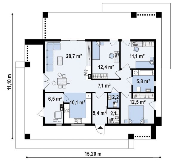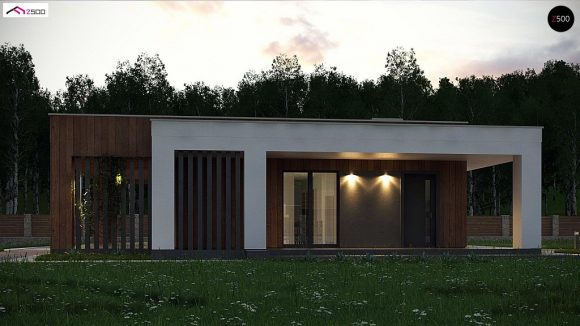 Проект одноэтажного дома с плоской крышей Zx76 D